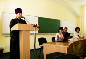 Зі вступним словом до учасників зібрання звернувся В.В. Яблонський, протоієрей кафедрального Спасо-Преображенського собору, голова адміністративної служби Білоцерківської єпархії УПЦ, який зазначив, що наукові здобутки Володимира Степановича є важливим внеском у відродження і збагачення духовних основ національного розвитку, інтеграцію традицій і вироблених минулими поколіннями морально-етичних норм у життя сучасного суспільства.