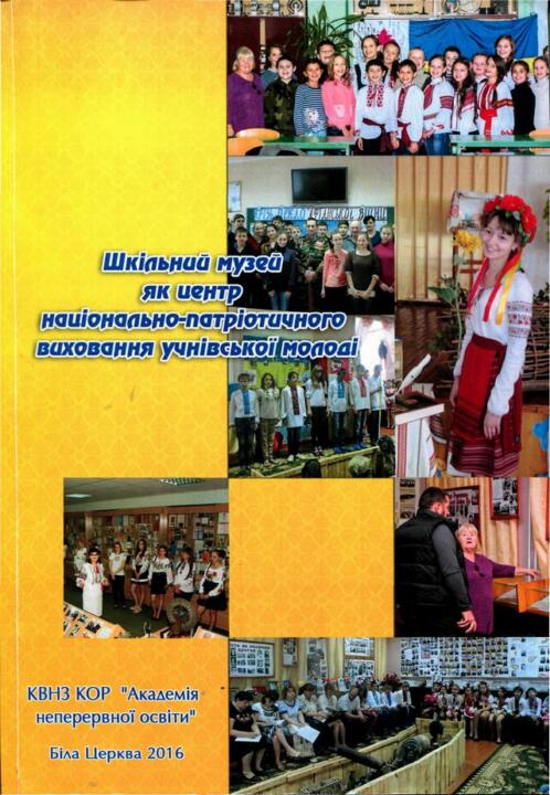 З приємністю повідомляємо, про те що вийшов друком навчально-методичний посібник «Шкільний музей як центр національно-патріотичного виховання учнівської молоді». Видання підготовлено авторським колективом слухачів обласного опорного закладу освіти, що функціонував у 2014-2016 роках на базі Трипільської загальноосвітньої школи І-ІІІ ступенів Обухівського району та Новоолександрівського навчально-виховного комплексу «Загальноосвітня школа І-ІІІ ступенів – дитячий садок» Згурівської районної ради.