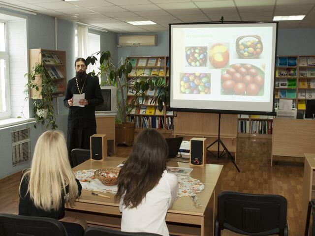 У вступній частині заходу зі вступним словом до учасників звернувся Сергій Олексійович Сиротинський, протоієрей кафедрального Спасо-Преображенського собору Білоцерківської єпархії УПЦ, який розповів про релігійні обряди та традиції, пов’язані зі святкуванням Великодня та написанням писанок, благословив усіх бажаючих приєднатися до сакрального світу писанок.