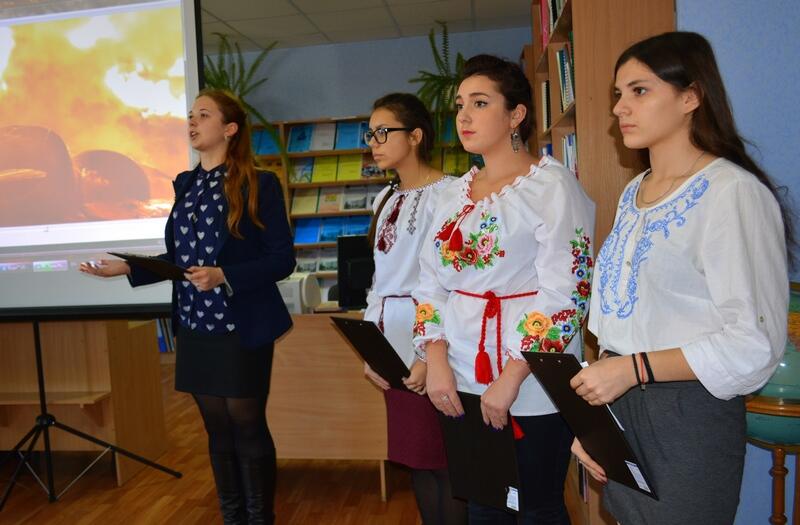 Ведуча заходу – О.Д. Пількевич, методист відділу музейної освіти та бібліотечної справи КВНЗ КОР «Академія неперервної освіти», зазначила, що на майдані люди відкрито виступили проти злочинного режиму, були представниками всіх регіонів України, різними за політичними і релігійними переконаннями, статками і соціальним статусом. Але кожен із них мріяв жити у вільній, незалежній Україні, де поважають права і гідність людини, кожен має право на вільне висловлювання власної думки. Майдан став символом боротьби за утвердження прагнень до Європейських цінностей. І за цю боротьбу, за нашу свободу і гідність заплачено високою ціною: своє життя віддали найкращі.